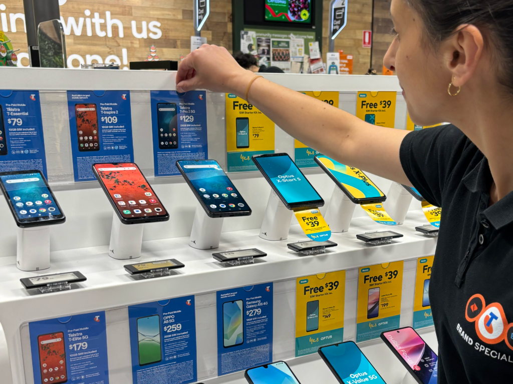 Telstra engaged CFM to relaunch SKUs and refresh displays across 5,000 retailers, requiring full stock removal, recycling, and POS installation — all within nine days.